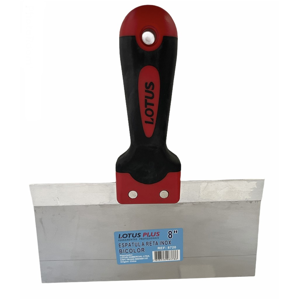 - Espátula retangular de aço inox, cabo de plástico rígido bicolor ergonômico e macio. Para conforto e durabilidade, lamina em aço inox temperado com placa suporte de alumínio, lamina especialmente afilada.