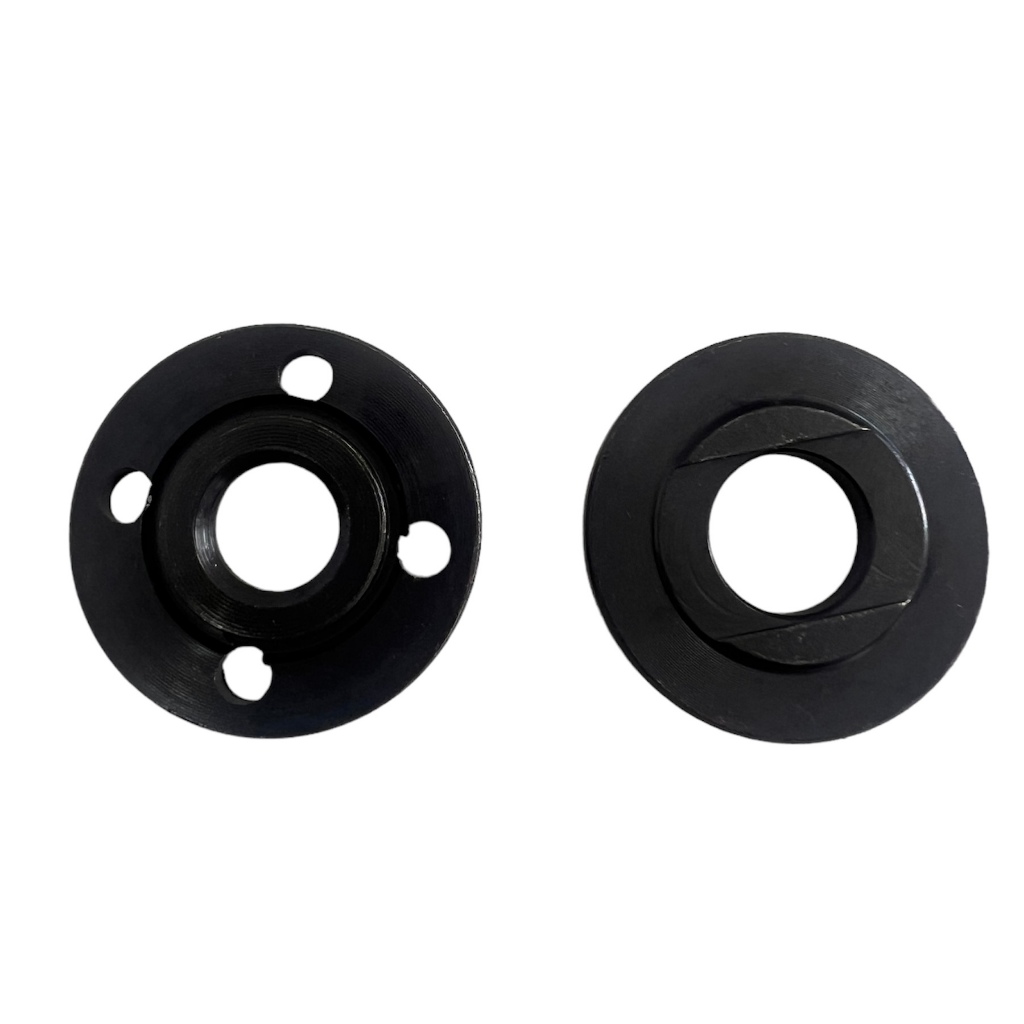 - Flange com porca para esmerilhadeira de 4.1/2".- Produzida em aço carbono, com diâmetro interno de 16mm, externo de 41mm e furo da rosca de 14mm,.
