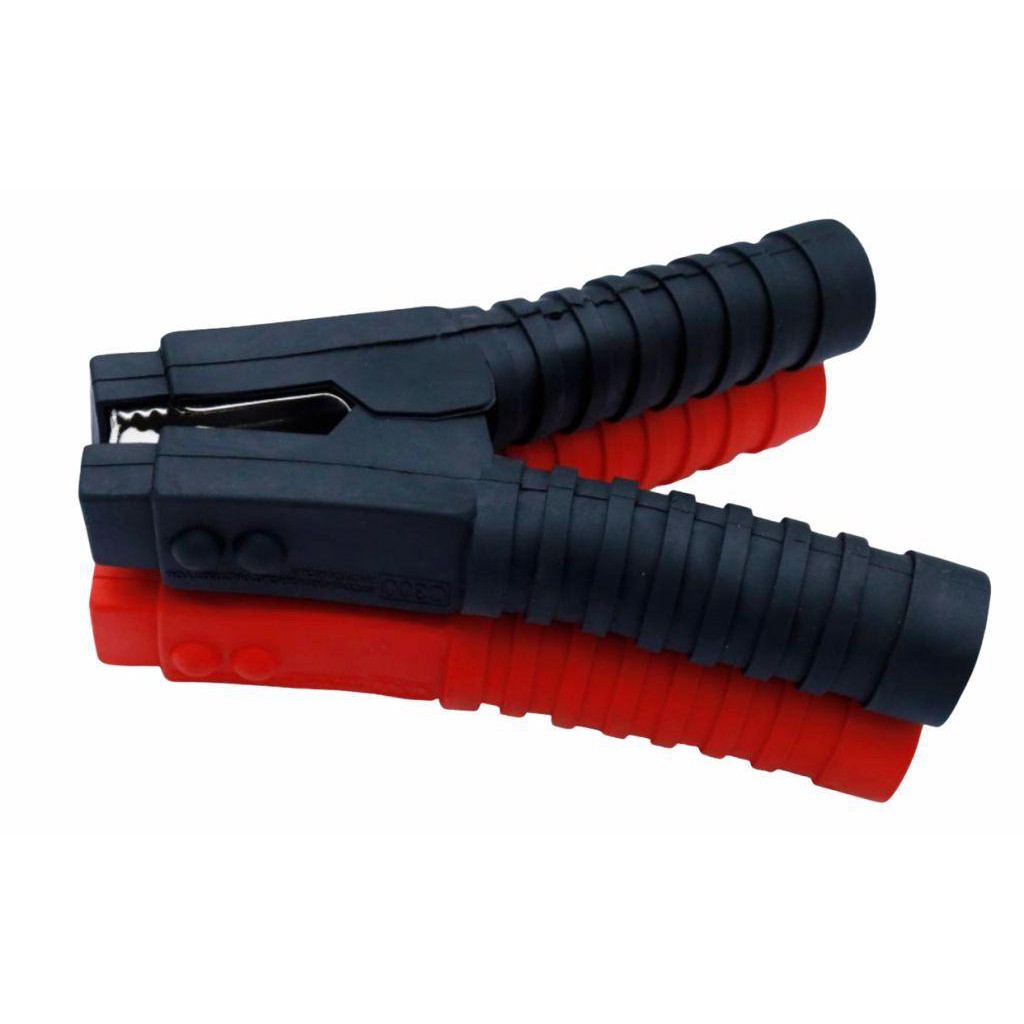 - Garra tipo Jacaré para recarga em baterias, 600A, em metal cobreado, com cabos de plástico vermelho e preto, diâmetro 32mm, comprimento total 155mm (a proteção de plástico cobre toda a garra), com parafusos e terminais de cobre, qualidade Plus super resistente.