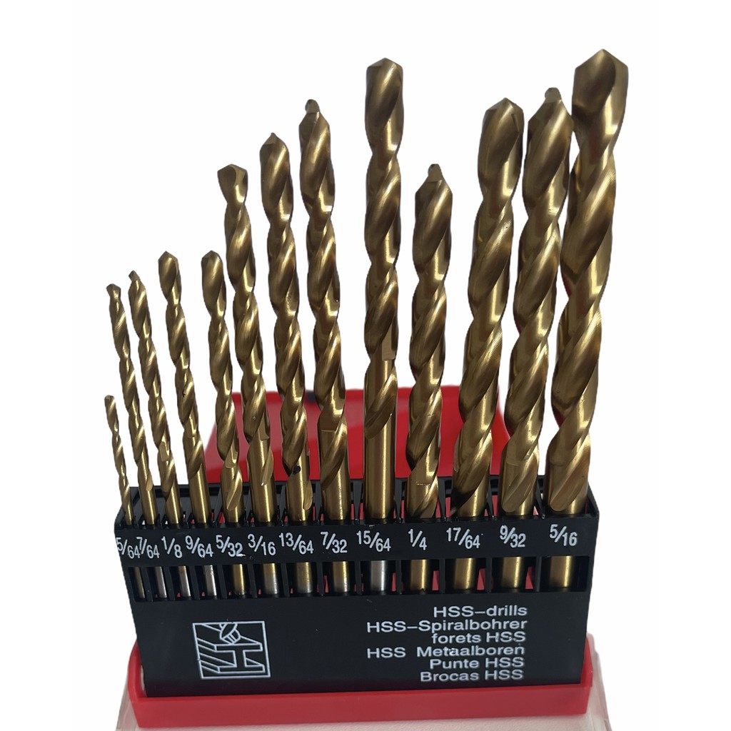 - Medidas 5/64 7/64 1/8 3/64 5/32 3/16 13/64 7/32 15/64 1/4 17/64 9/32 5/16", em resistente caixa plástica transparente, com cobertura de Titânio para máximo desempenho, para uso profissional, alta robustez e resistência.
